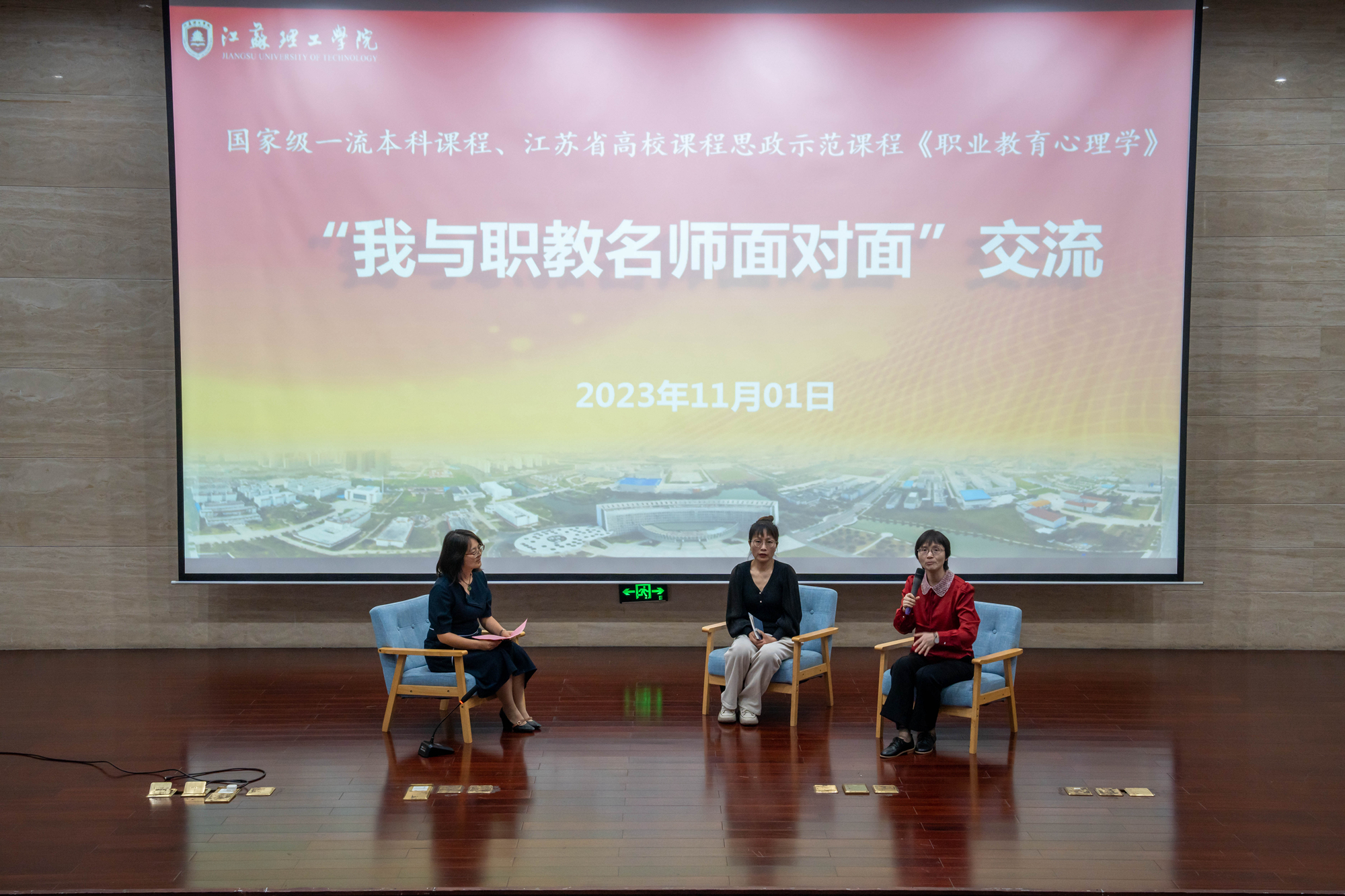 活动特别邀请江苏省第五期“333高层次人才培养工程”中青年学术技术带头人,镇江高等职业技术学校党委委员、工会主席,现援疆可克达拉职业技术学院筹备组教学组组长(主持学院行政工作),三级教授马殷春和江苏省职业教育教师教学创新团队“电子与信息技术”教学团队领衔人、江苏省“333高层次人才培养工程”中青年学术技术带头人、无锡机电高等职业技术学校科研处主任、正高级讲师成洁,共同为职业技术师范教育专业的学生带来了职教领域优秀教师职业生涯发展的经验分享。两位校友与在场师生进行“我与职教名师面对面”互动交流。郭耿玉向校友赠送专家报告书和学校文创纪念品;郝永贞向校友颁发职教硕士研究生实践导师聘书。