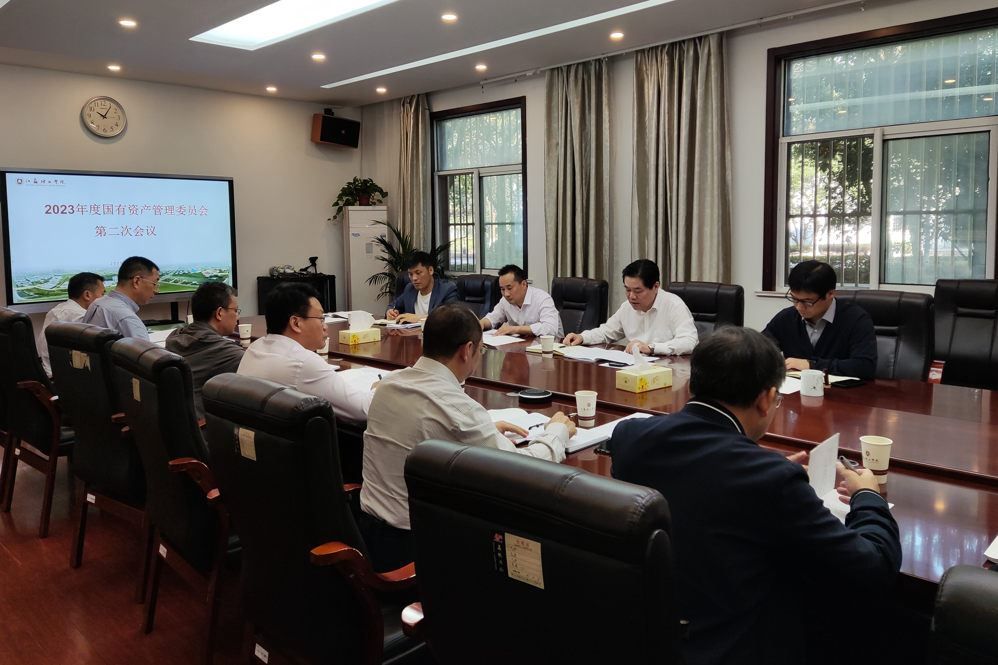 会议集体学习了《江苏省省级事业单位用车管理办法》《江苏省省级事业单位房产管理办法》,讨论了年度资产盘点与大型贵重设备绩效评价实施方案、学校国有资产管理绩效评价问题整改报告和《江苏理工学院国有资产管理办法》等系列文件修订事宜,听取了常州翔宇置业有限公司安置区商铺销售进展情况及下一步工作打算。