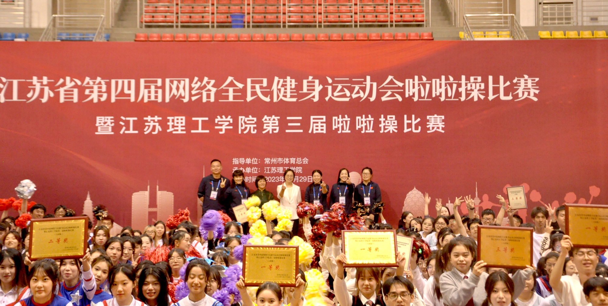 本赛事由常州市体育总会指导,我校承办。党委常委、副校长俞亚萍,常州市体育局群体处处长、常州市体育总会秘书长丁树俊,校团委书记朱书阳,体育部党总支书记季敏等出席活动并为获奖队伍颁奖。