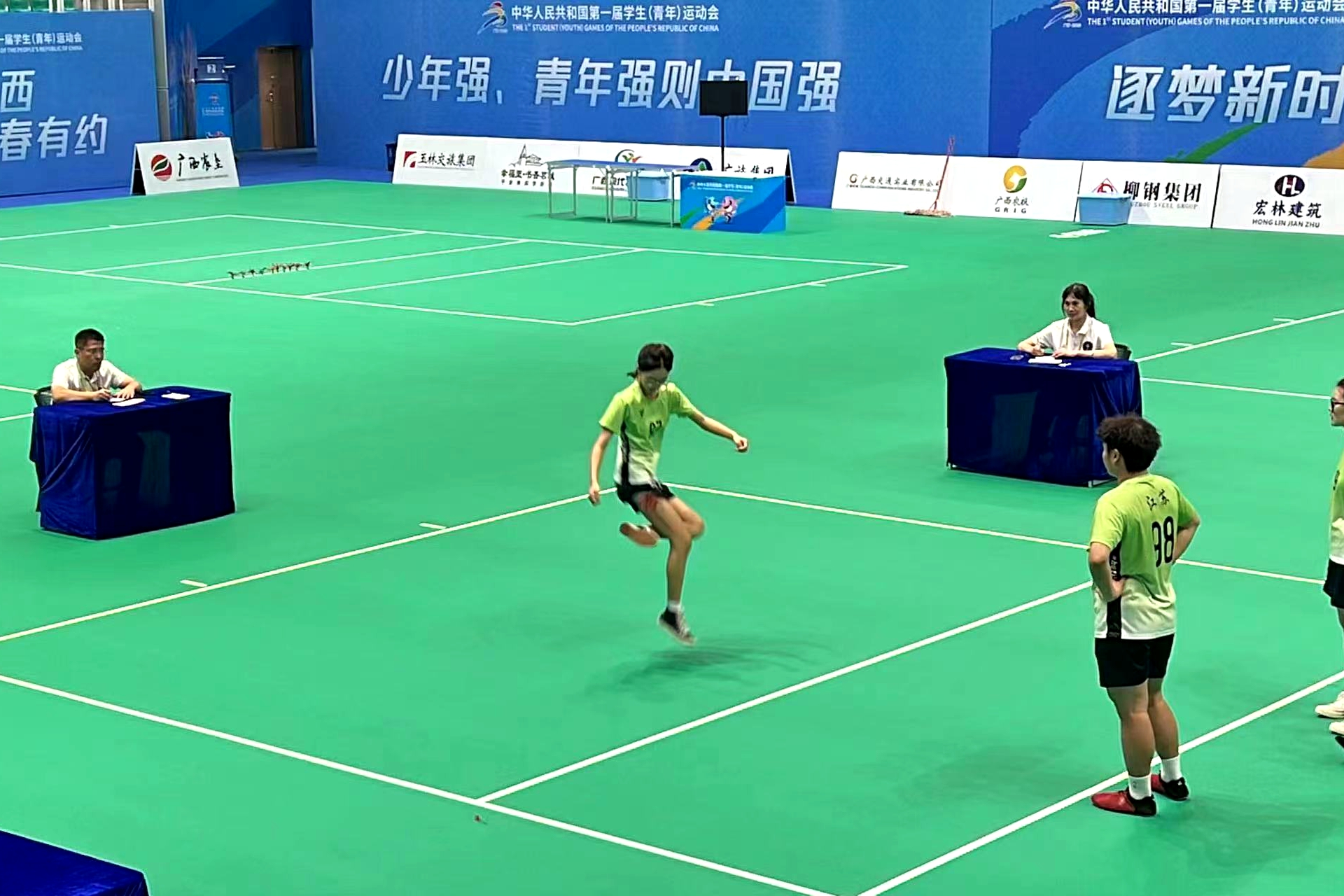 近日,我校文旅学院20级学子沈思嘉在广西南宁举办的首届全国学生(青年)运动会毽球比赛中,不畏强敌,代表江苏队荣获花毽四人混合接力比赛冠军。本次混合接力项目由盘踢、绷踢、磕踢、跳踢四种踢法组成,每一种踢法限时30秒,以完成个数决定名次。最终,我校学子沈思嘉压轴登场,跳踢零失误完成比赛,江苏队也以预赛加决赛总成绩310个,力克东道主广西队等11支队伍夺得冠军。