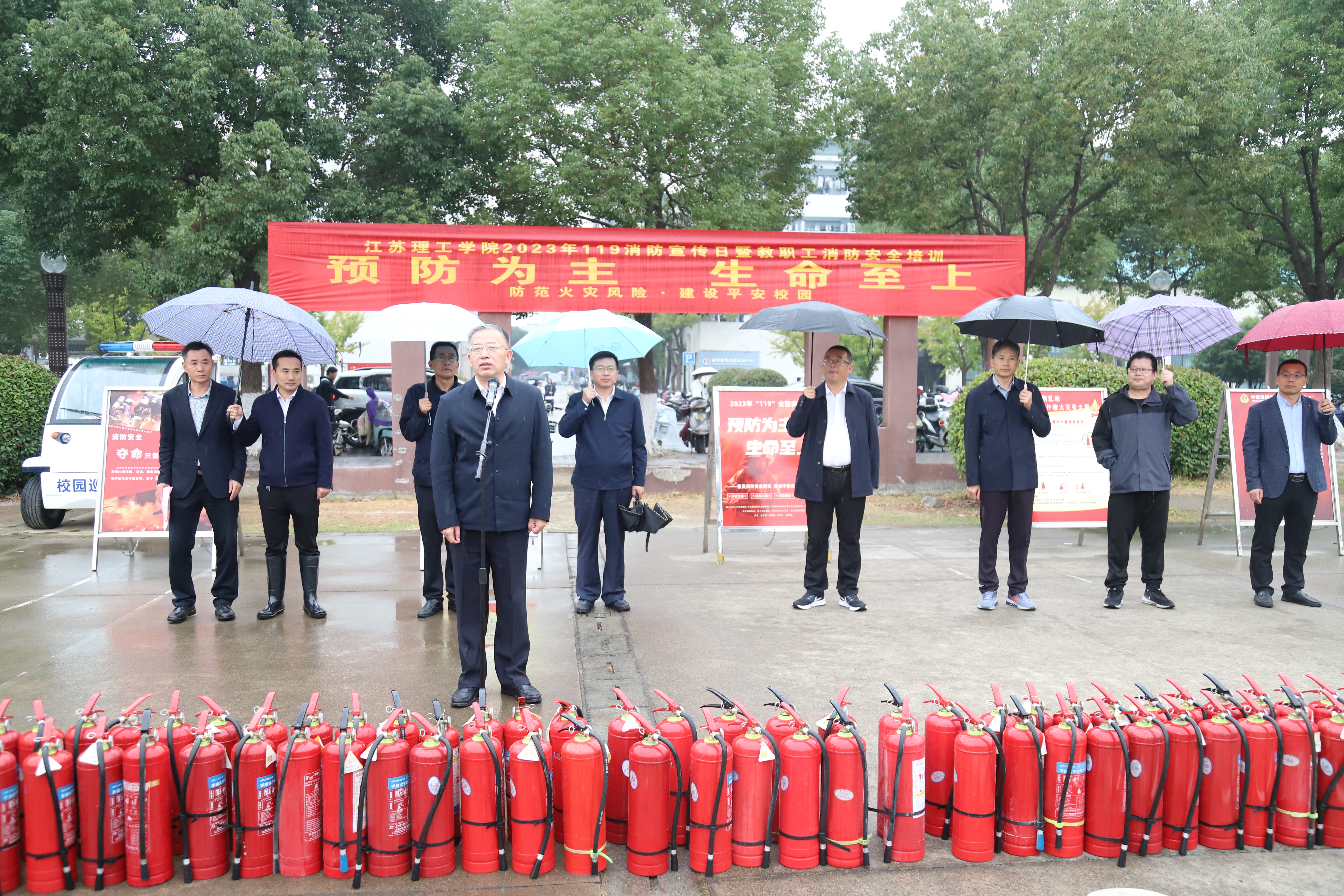 为进一步增强我校教职员工消防安全意识,掌握消防安全技能,提高自护自救能力,在第32个全国消防日到来之际,我校在西苑篮球场举办以“预防为主,生命至上”为主题的“11.9”消防宣传日暨重点岗位教职员工消防安全培训。参加本次培训的有来自后勤一线的员工、商户承租人员、实验室、图书馆管理人员以及新进教职工等。校党委书记崔景贵、校党委副书记贝绍轶及相关职能部门负责人参加了此次活动。