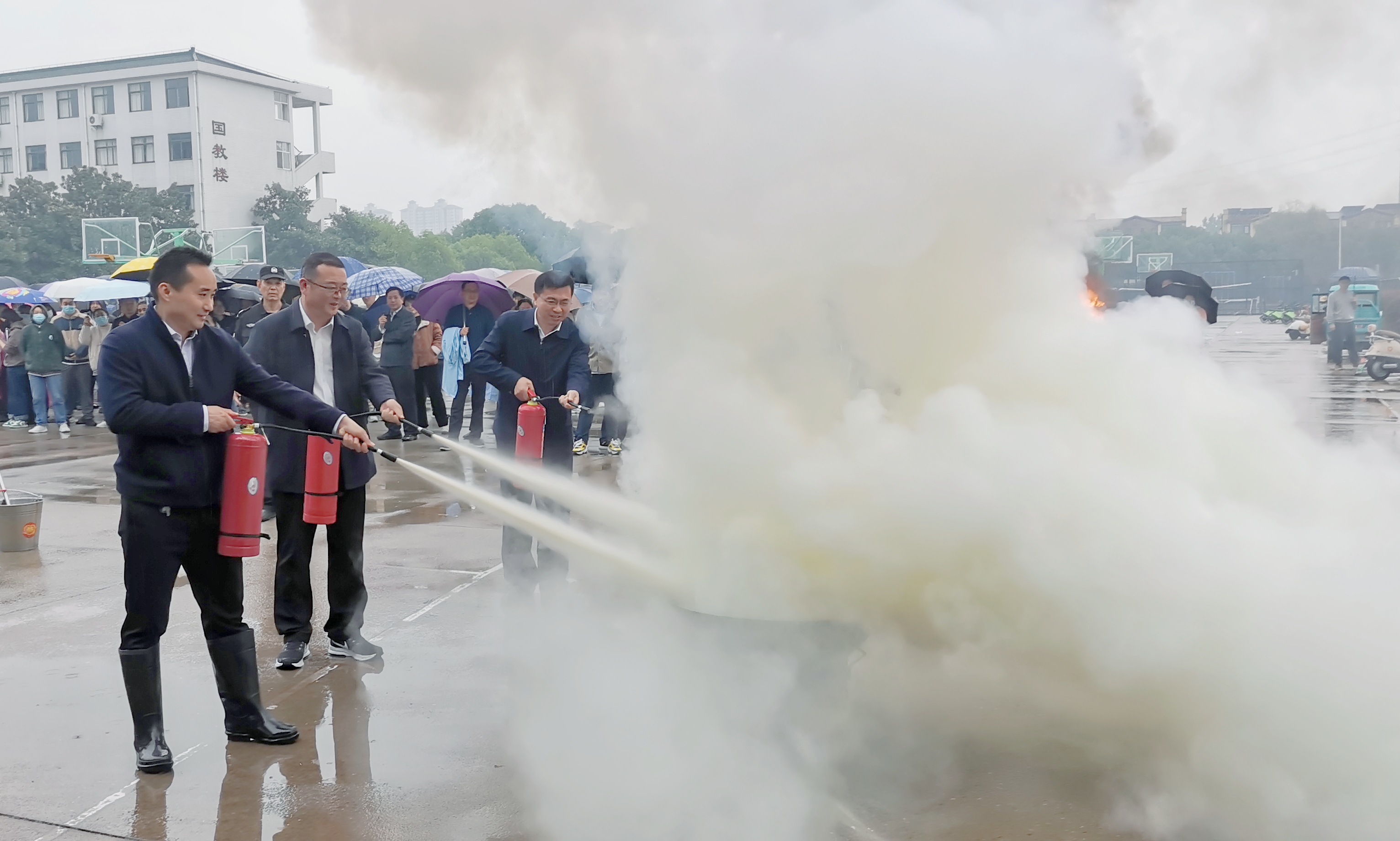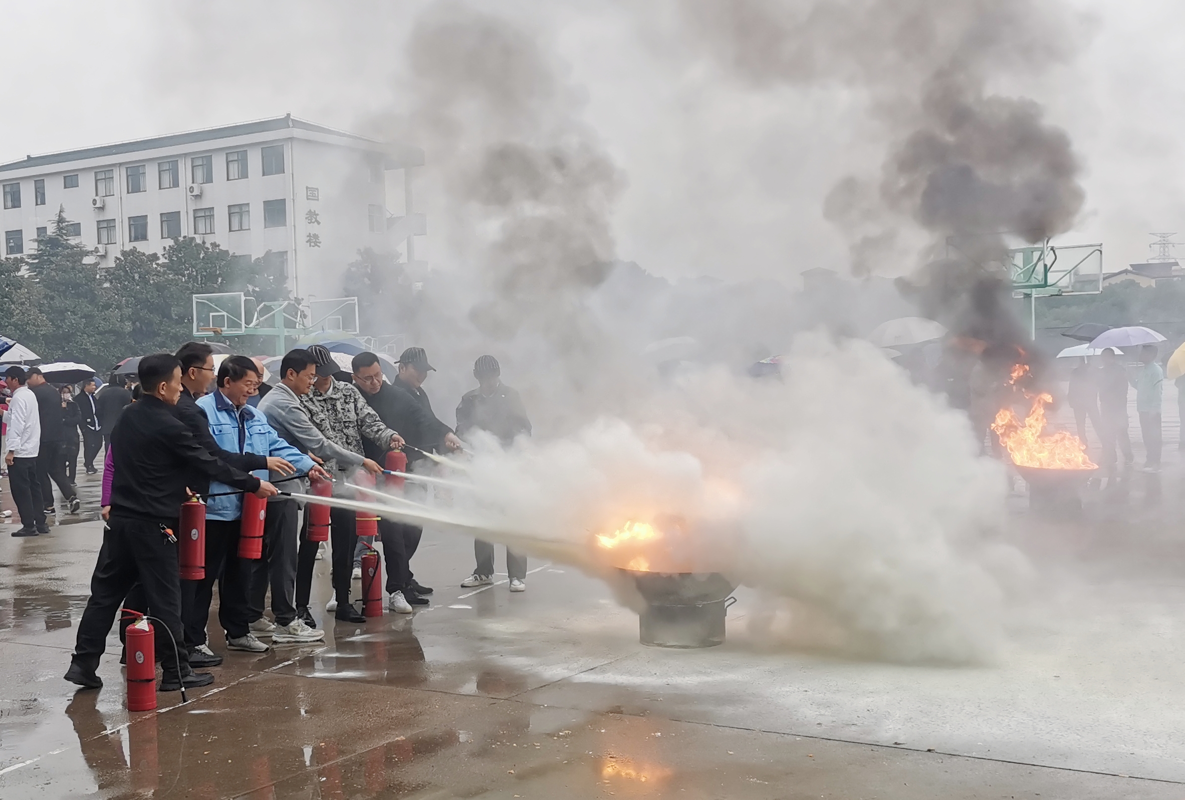 我校保卫处消防科科长杨吉涛针对初起火情处置、疏散逃生技能、常见消防器材使用方法作了具体讲解与培训,安保人员组织在场教职员工通过“一看、二拔、三对准、四喷射”有序地进行灭火演练。(文/保卫处 丁静;审核/王龙;图/编辑 蒋相杰)