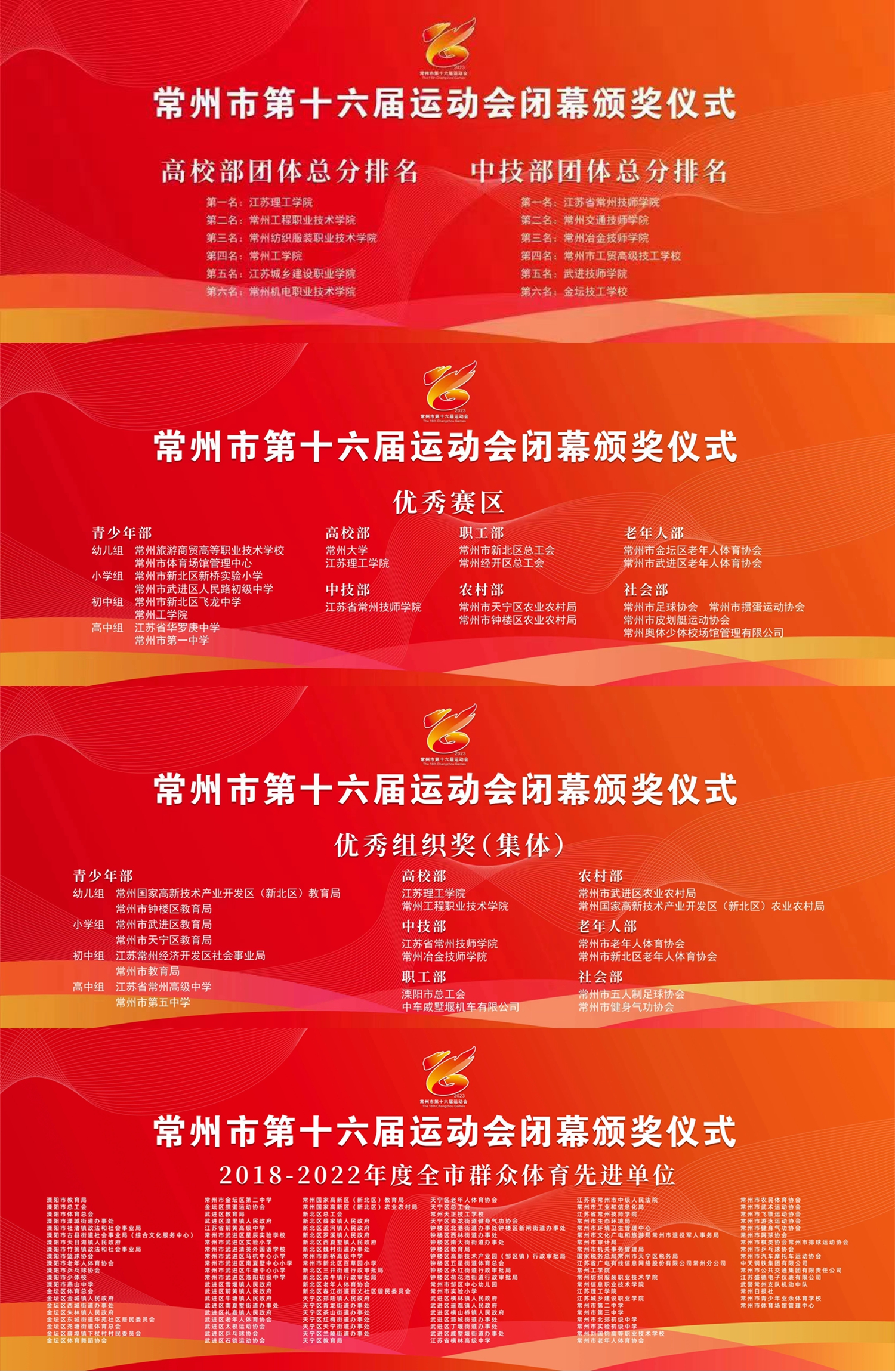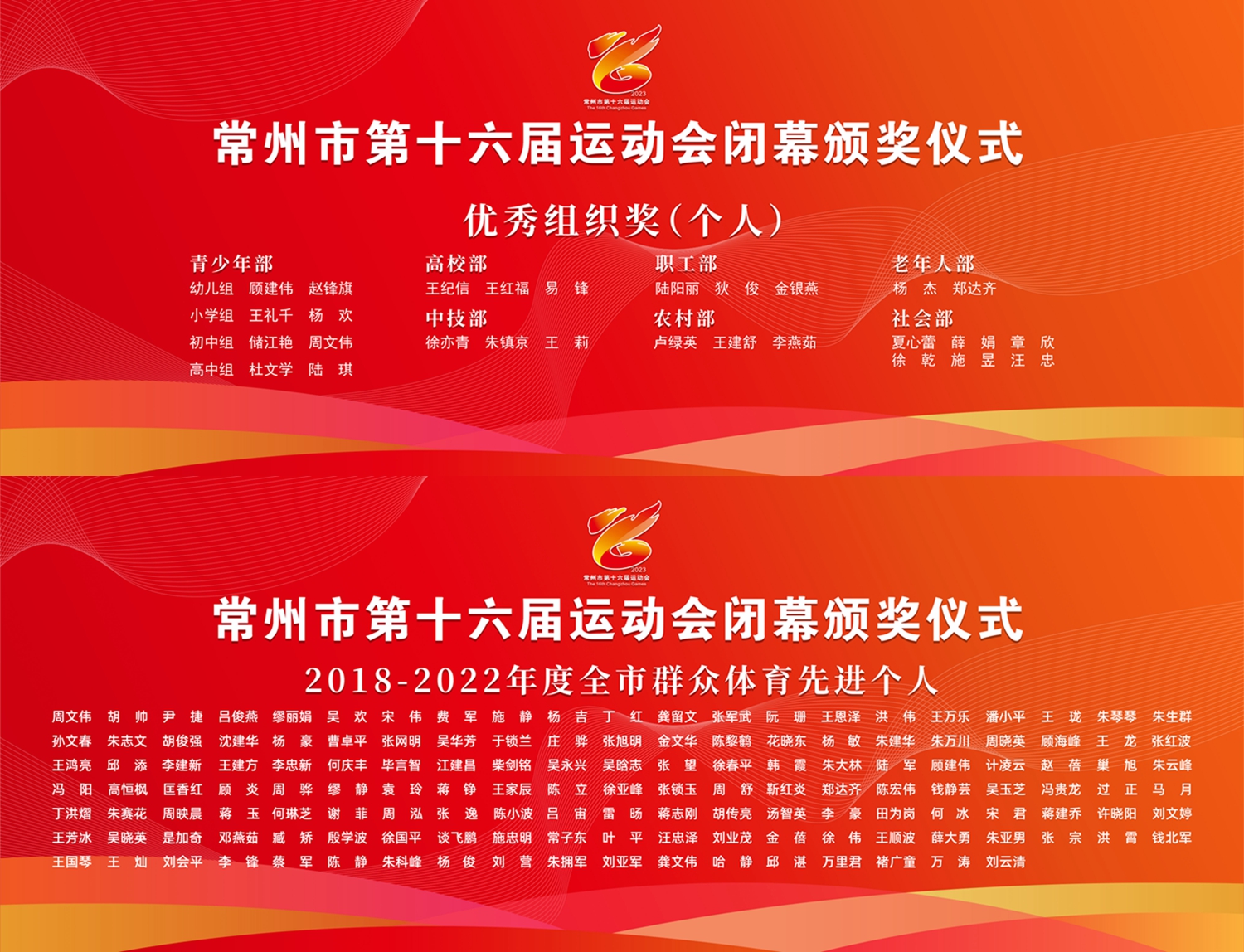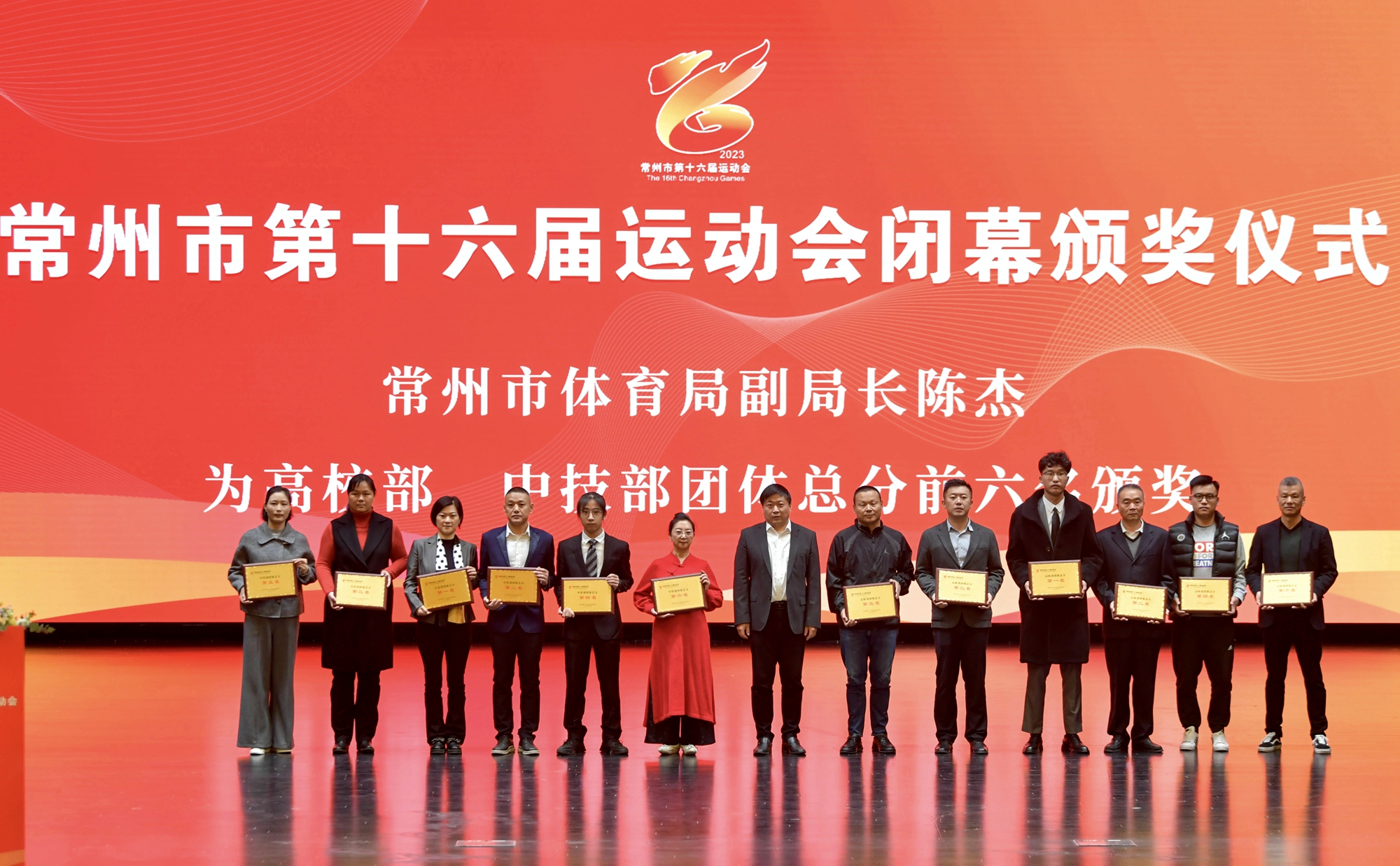 11月11日,历时6个月的常州市第十六届运动会在工人文化宫圆满落幕。常州市人民政府副市长蒋鹏举、副秘书长陈峰、体育局局长刘志峰等领导出席闭幕式,并对在本届市运会中取得优异成绩的单位和个人等进行了表彰。