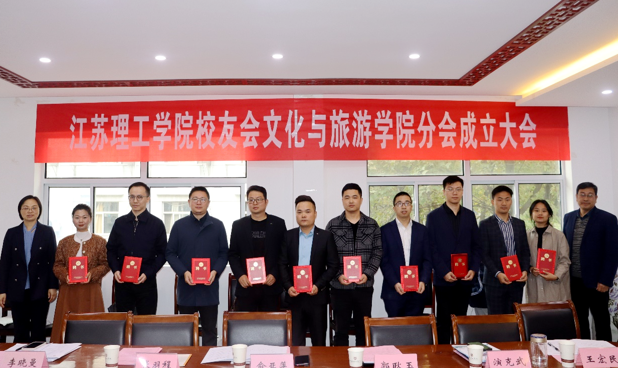 俞亚萍、郭耿玉为校友理事会成员代表颁发聘书。大会宣布,江苏理工学院校友会文化与旅游学院校友分会正式成立。
