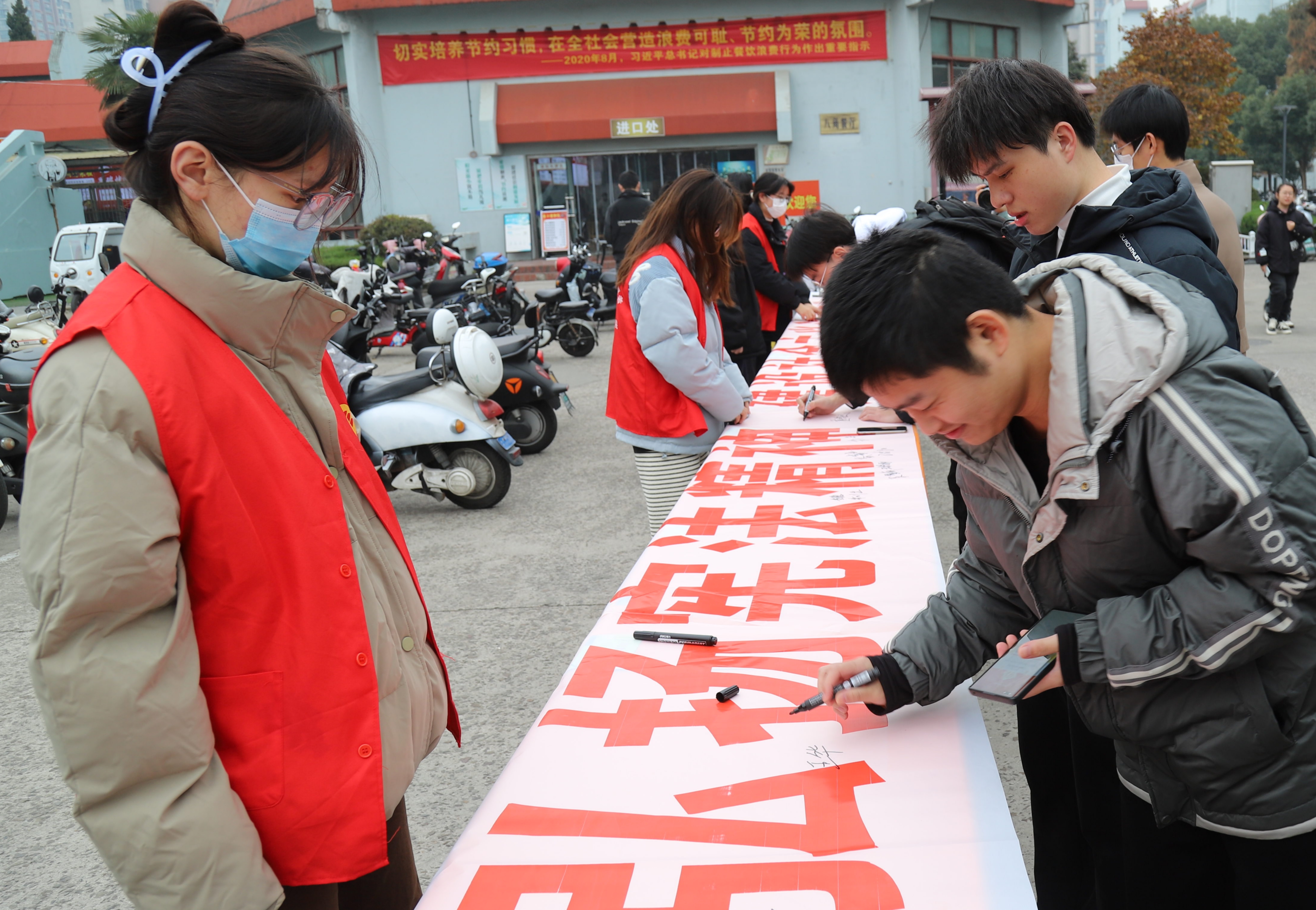 12月4日上午,我校在北苑食堂门口开展宪法日签名活动,通过PU定点签到、签名打卡、展板速览等形式,吸引了全校大量师生前来参与。据悉,此次活动积极响应了教育部普法办、省教育厅以及常州市的相关工作部署要求,于11月28日下发了宪法宣传周活动通知,做了一系列部署安排。