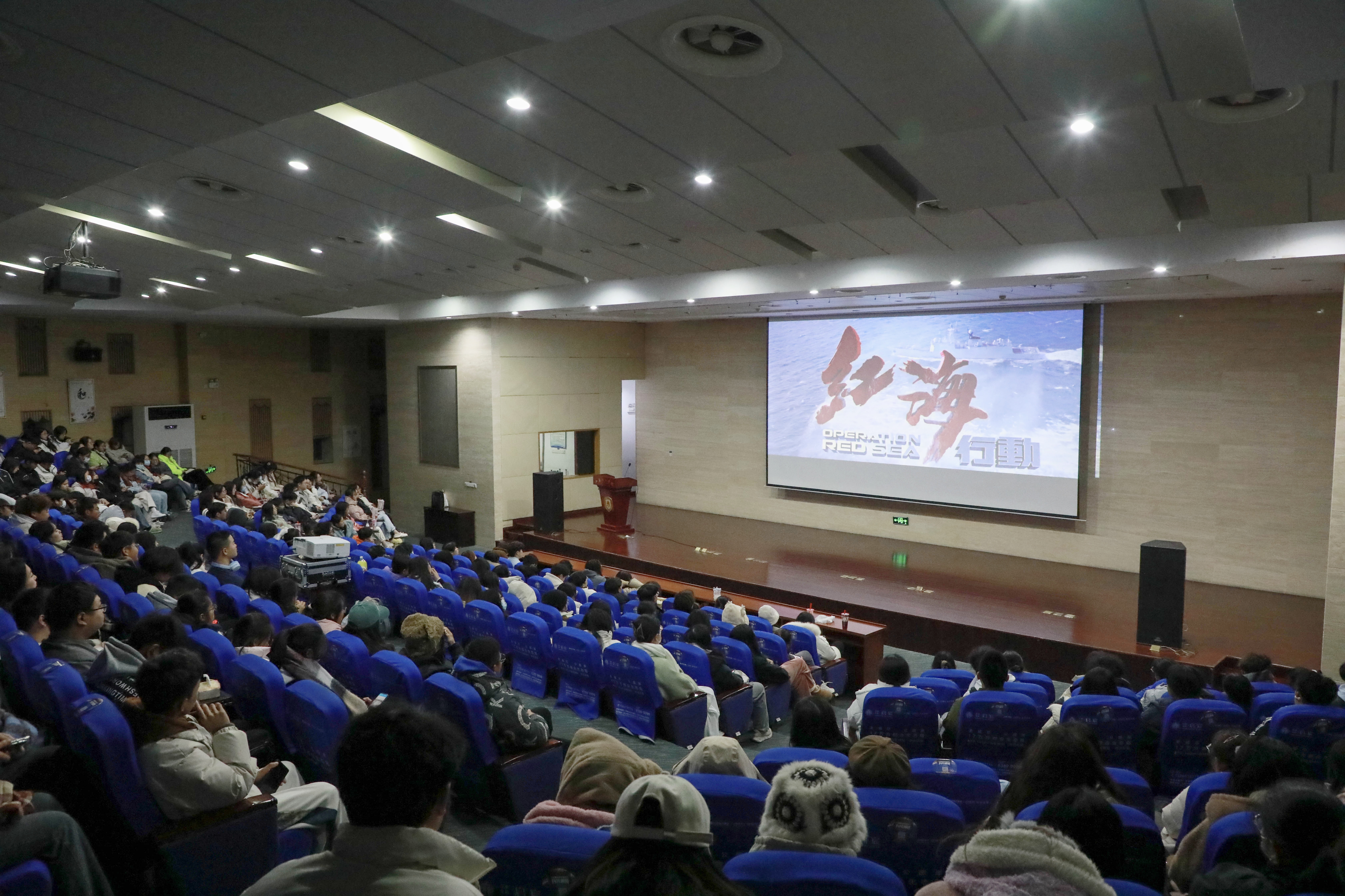 为深入学习贯彻党的二十大精神,充分发挥红色革命文化题材和主旋律题材电影的教育引导作用,弘扬爱国精神,有序推进“红色影片进校园”系列活动开展,丰富校园文化生活,提升师生幸福感、获得感,12月1日晚,我校在图书馆北报告厅展映了优秀影片《红海行动》。