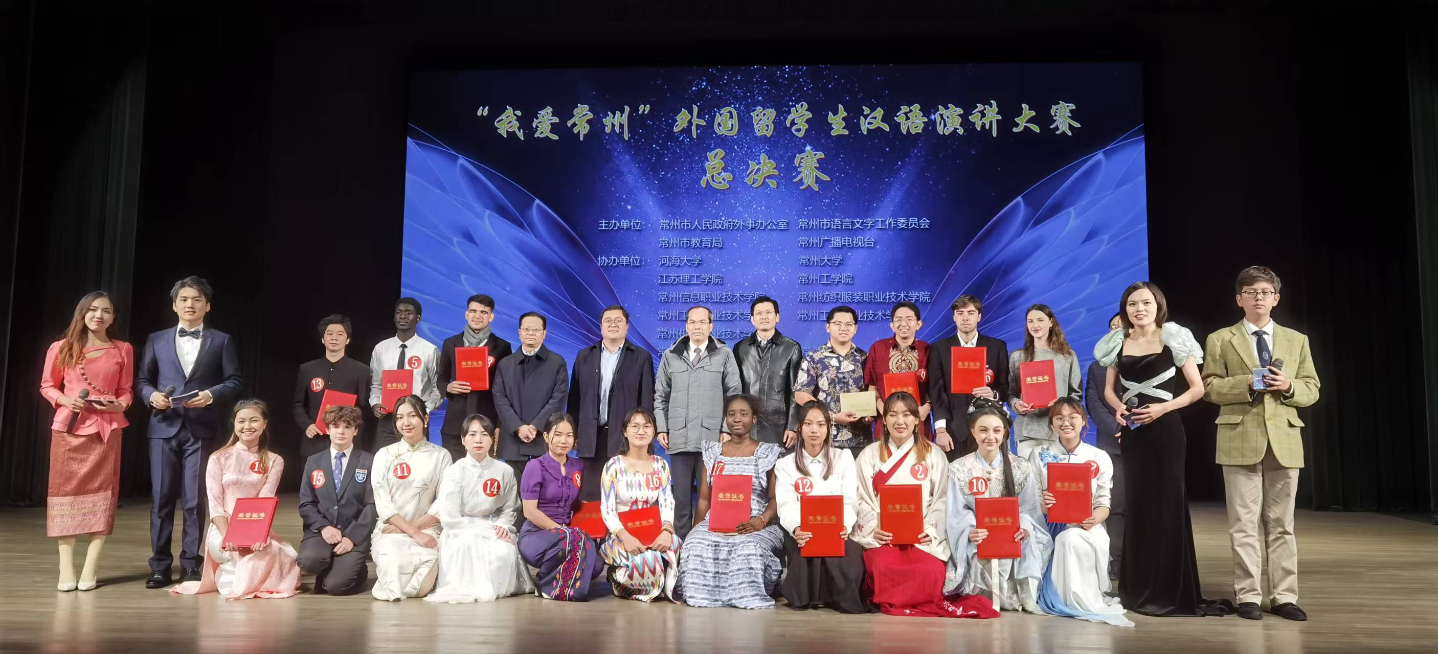 12月12日,由常州市人民政府外事办公室、常州市教育局、常州市语言文字工作委员会、常州广播电视台联合主办的2023年“我爱常州”外国留学生汉语演讲大赛总决赛在河海大学常州校区举行。我校获优秀组织单位奖,国际教育学院马来西亚籍留学生林旆如、越南籍留学生黎氏水均获二等奖,国际教育学院教师郜思洁获优秀指导教师奖。
