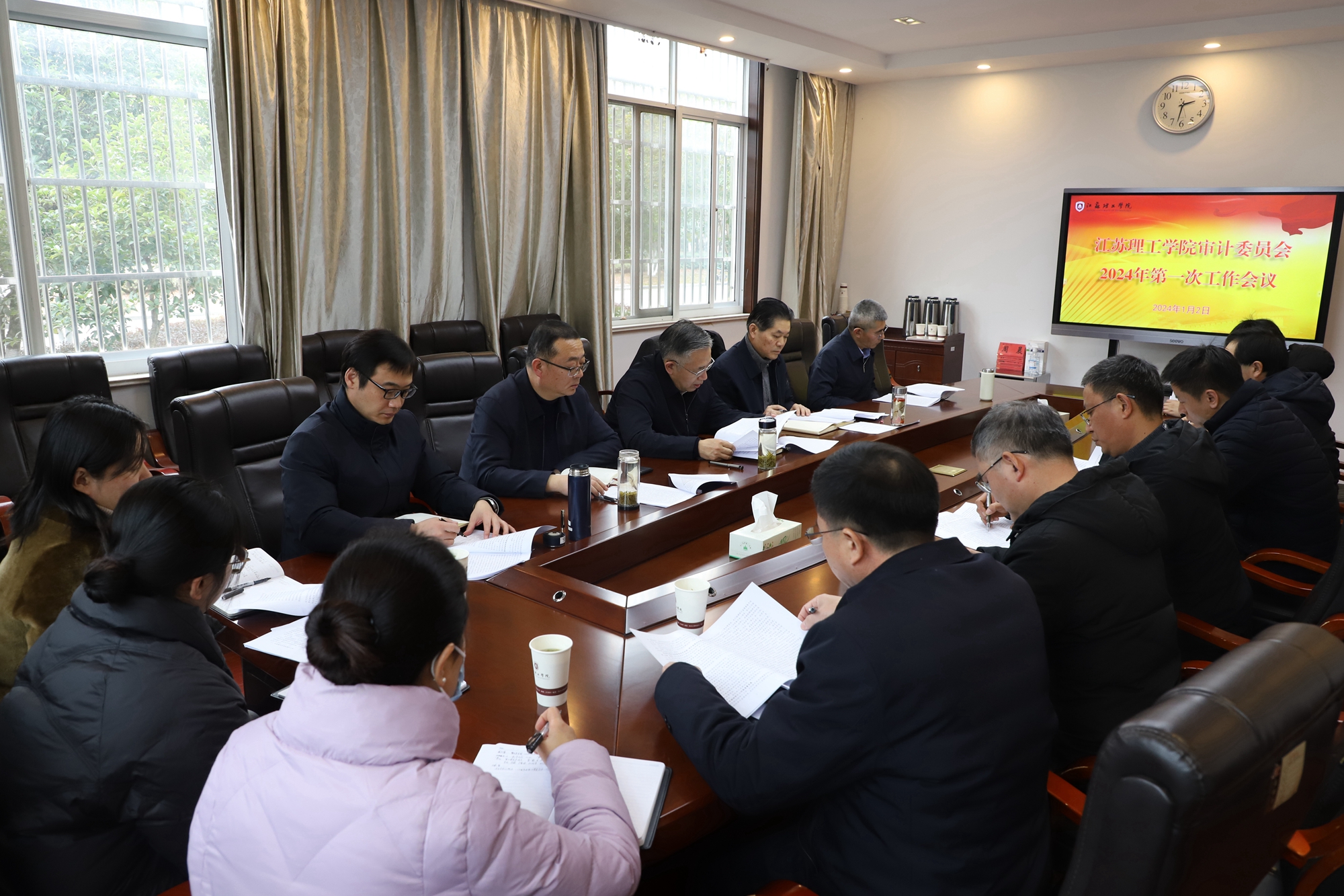 会议学习习近平总书记在二十届中央审计委员会第一次会议上的重要讲话精神。审议并同意《关于调整江苏理工学院审计委员会组成人员的报告》,审议并原则通过《2023年审计工作情况报告》《2024年审计工作计划》《2024年中层党政干部经济责任审计项目计划》。