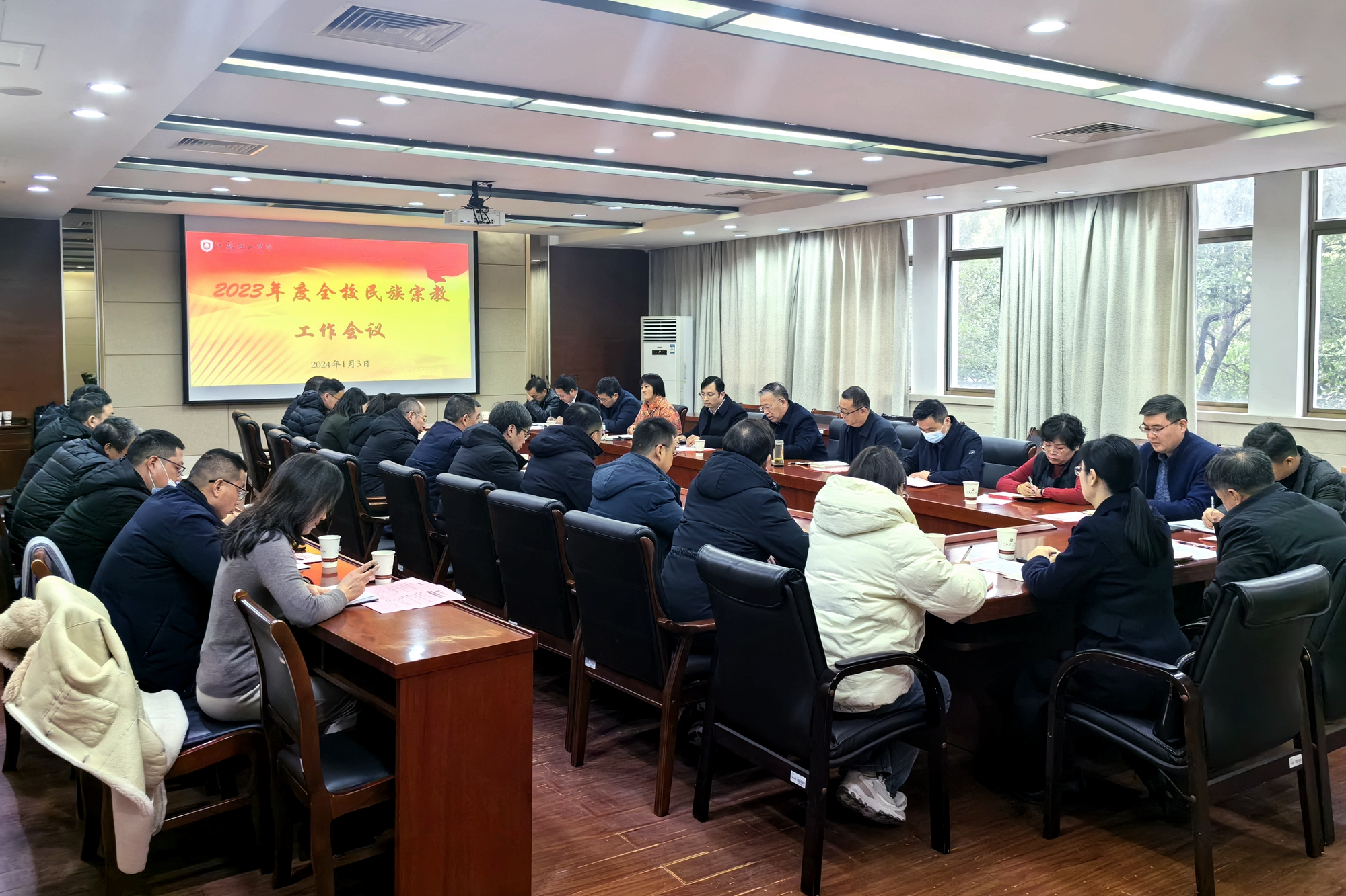 崔景贵讲话,充分肯定2023年度学校统战工作取得的显著成效,衷心感谢各部门、各单位党组织和各民主党派、统战团体付出的辛勤劳动、作出的积极贡献。他指出,要完整准确领会习近平总书记关于民族宗教工作的重要讲话精神,认真贯彻落实中央民族工作会议和全国宗教工作会议精神,深刻认识全面贯彻党的民族政策和党的宗教工作基本方针、进一步健全和完善学校大统战工作、扎扎实实做好民族宗教工作的重要性。他提出三方面要求:一要坚持深学细悟践行党的创新理论,努力做到学思用贯通、知信行统一,聚力持续优化思想引领、服务中心大局、夯实工作基础,全力确保我校民族宗教工作始终沿着正确方向前进;二要坚持以铸牢中华民族共同体意识为主线,着力强化思想政治引领,凝聚团结奋斗思想共识,推进思政课程与课程思政协同发力、第一课堂与第二课堂有效融通,着力营造各民族团结友爱进步、交往交流交融的校园文化氛围;三要坚持和加强党对民族宗教工作的全面领导,形成齐抓共管、上下联动、同频共振、通力合作的新格局,坚决筑牢防线、坚定守住底线,为奋力推动学校高质量发展创造更加积极文明和谐的校园育人环境。