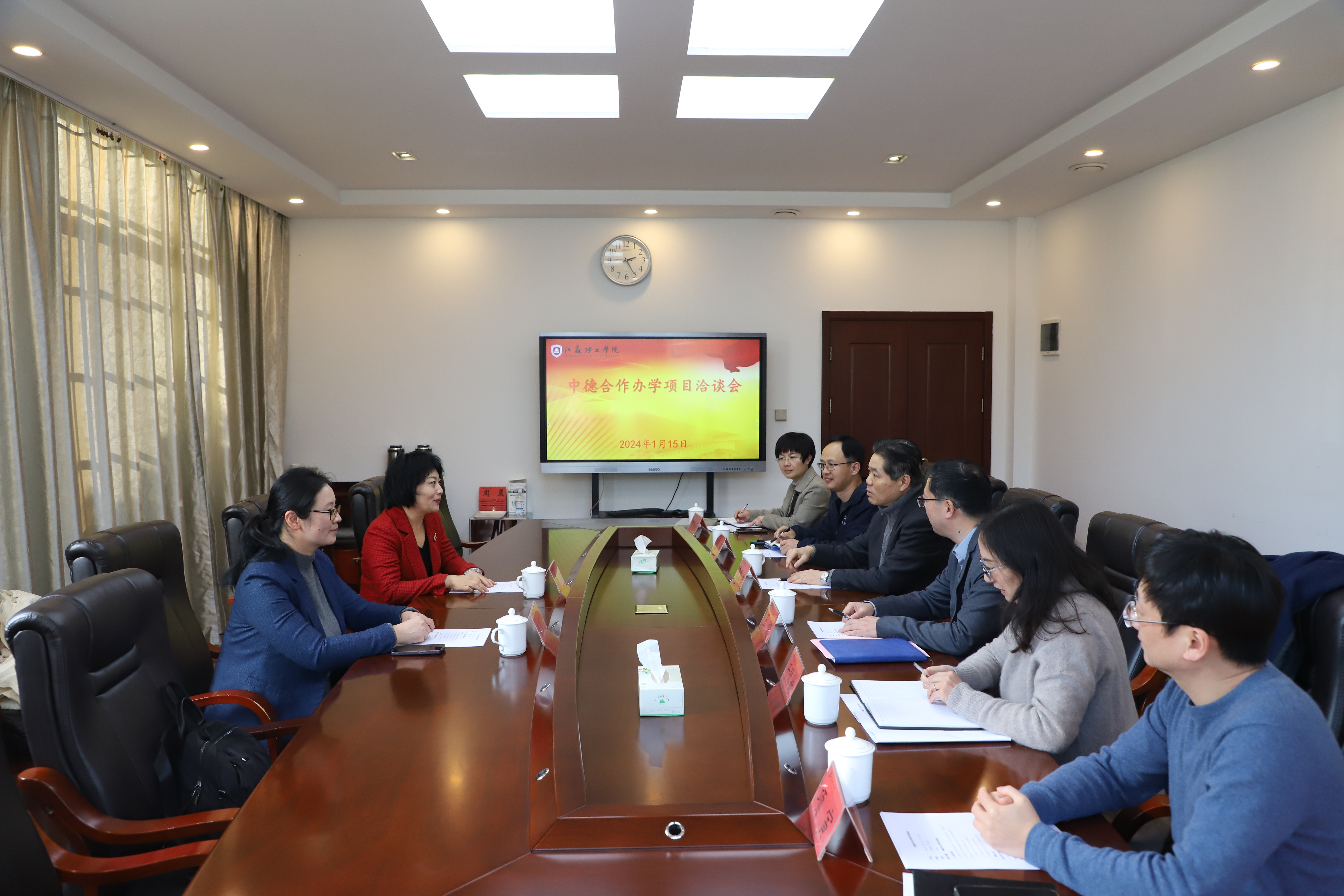 1月15日下午,中德合作办学项目洽谈会在正德楼第一会议室举行。党委副书记、校长戴国洪,党委常委、副校长王俊,德国梅泽堡应用技术大学国际教育合作学院中国联络处主任许婕,国际教育学院、国际合作与交流处相关负责人参加了会议。