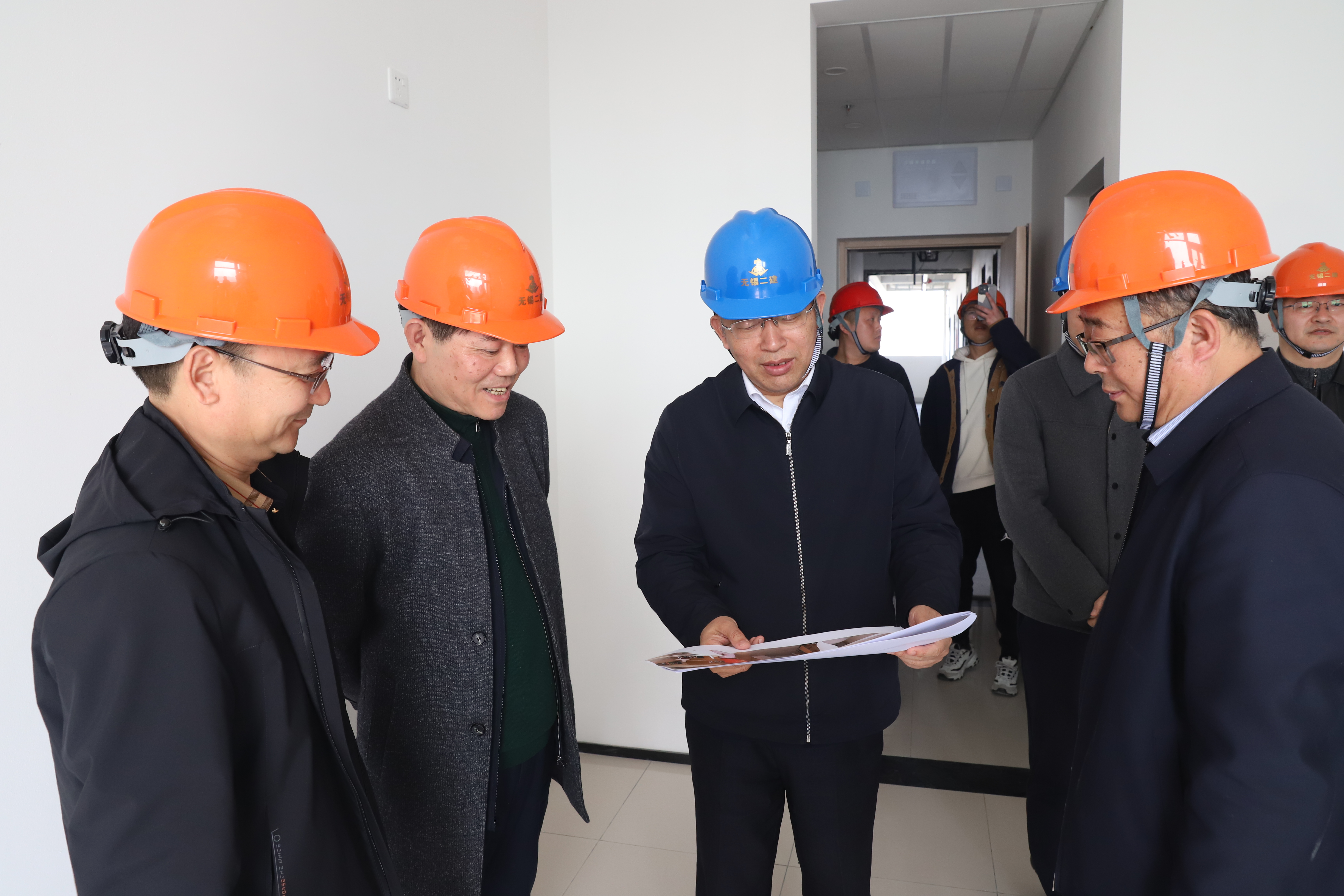 校领导实地参观了新校区理工组团、学生宿舍等部分区域的施工现场,重点考察了汽车与交通学院楼二次结构施工样板间和学生宿舍标准样板间,对工程建设进度、施工质量等情况进行了深入了解,并在中建八局报告厅与武进绿建区管委会领导、参建单位负责人进行了座谈研讨。