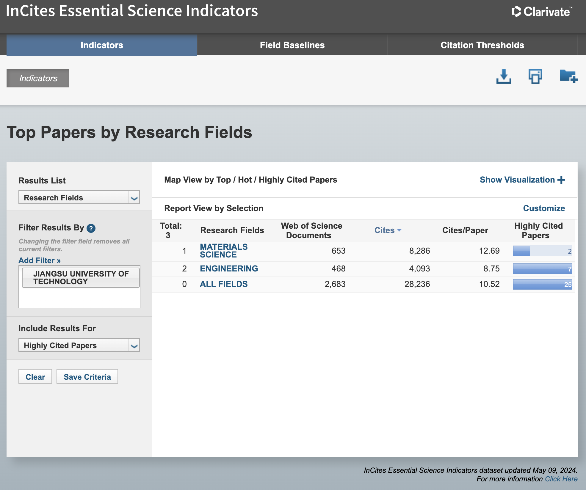数据显示,我校共发表ESI论文2683篇,其中高被引论文25篇,总被引频次28236次;在“材料科学”学科领域发表论文653篇,其中高被引论文2篇,总被引频次8286次,篇均被引12.69次;前期入围的“工程学”学科领域发表论文468篇,其中高被引论文7篇,总被引频次4093次,篇均被引8.75次,国际总排名2230位,较上期(2024年3月)提升62位。此外,我校“化学”学科是下阶段有望进入ESI全球前1%的潜力学科。(图文/学科办 屠远;审核/朱福先;编辑/周雅倩)