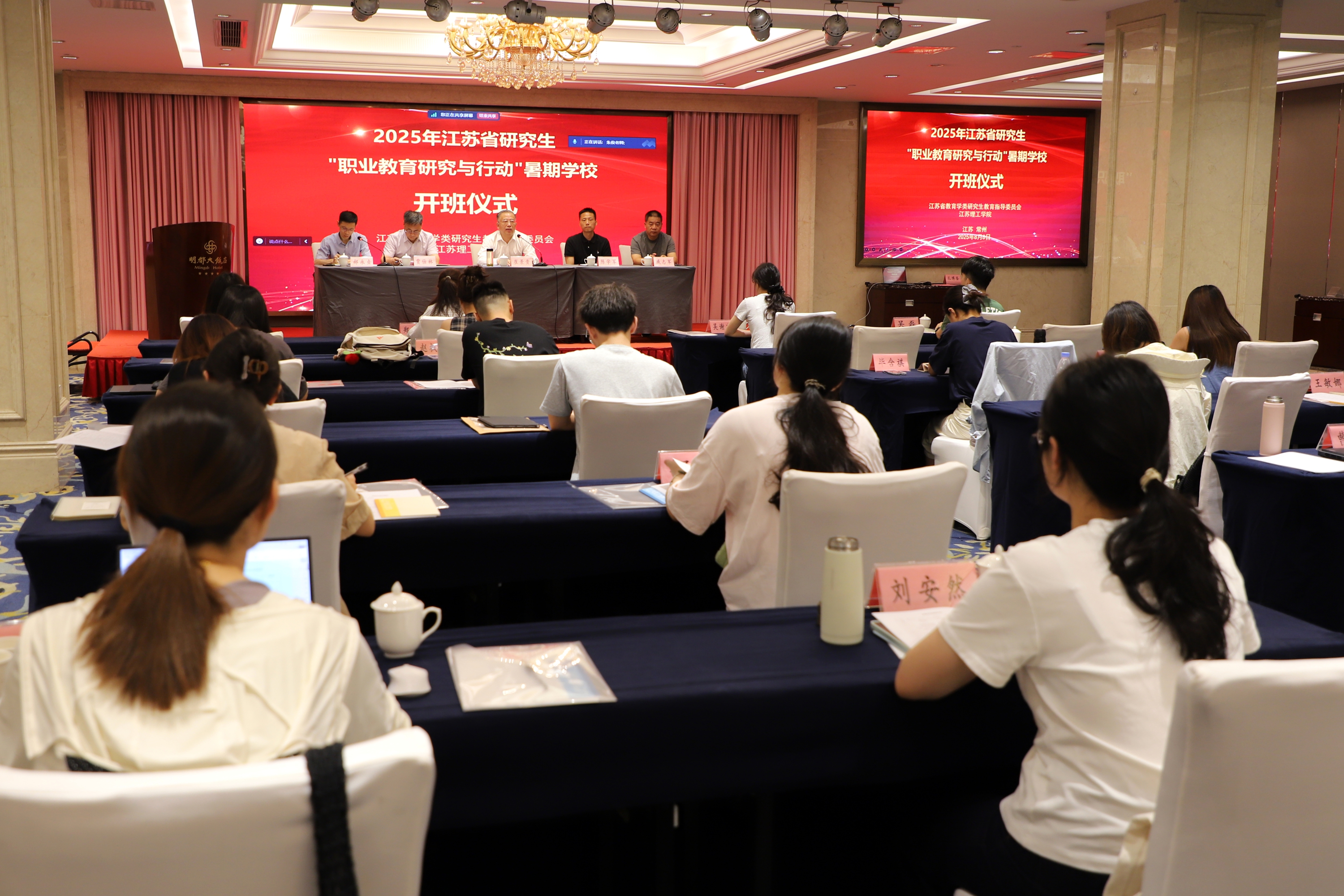 8月8日上午,由江苏省教育学类研究生教育指导委员会主办、江苏理工学院承办的2025年江苏省研究生“职业教育研究与行动”暑期学校在常州举行开班仪式。校党委书记崔景贵、江苏省教育学类研究生教育指导委员会秘书长陈学军以及党委研究生工作部、炎培学院相关负责人参加开班仪式。