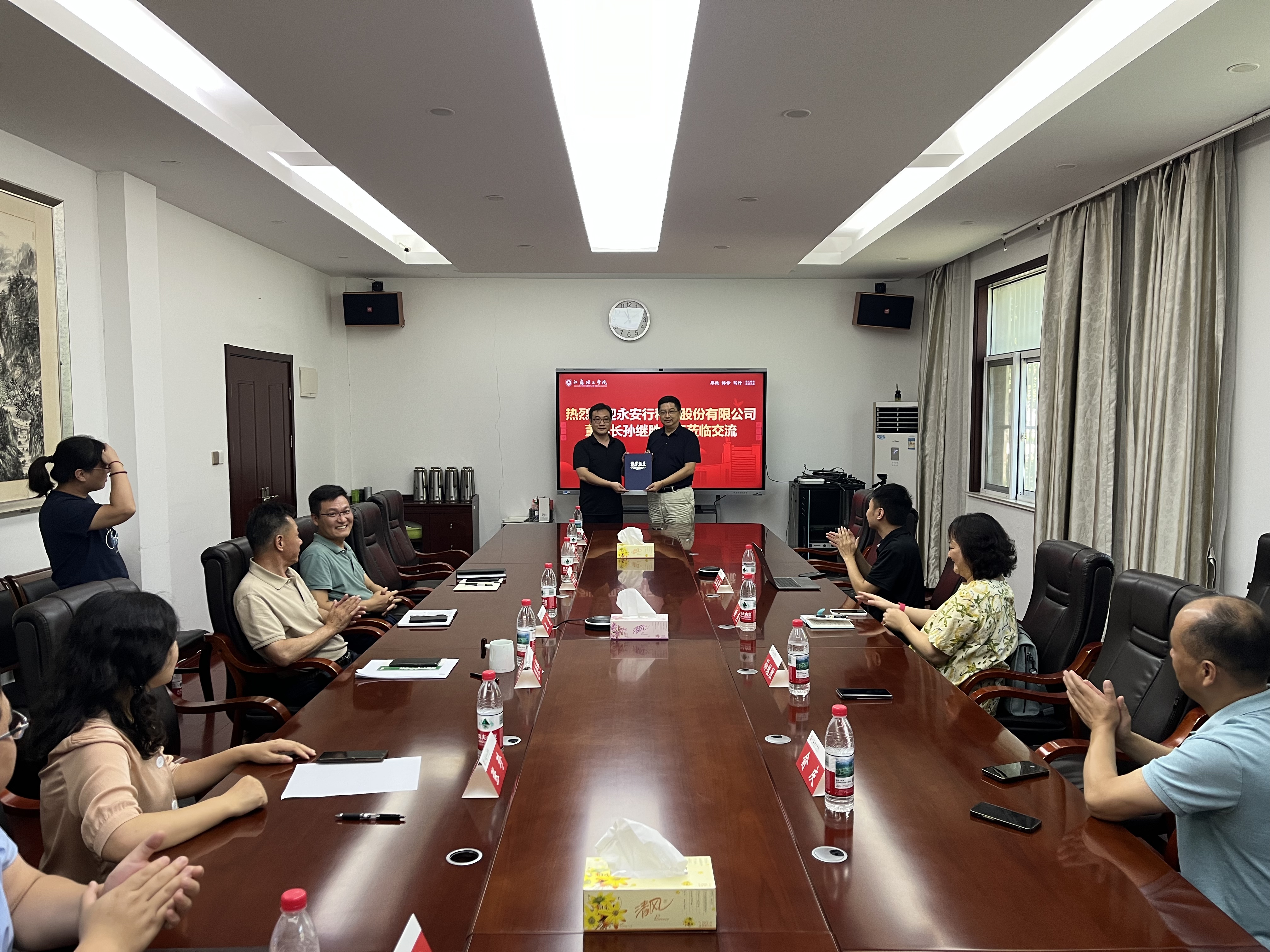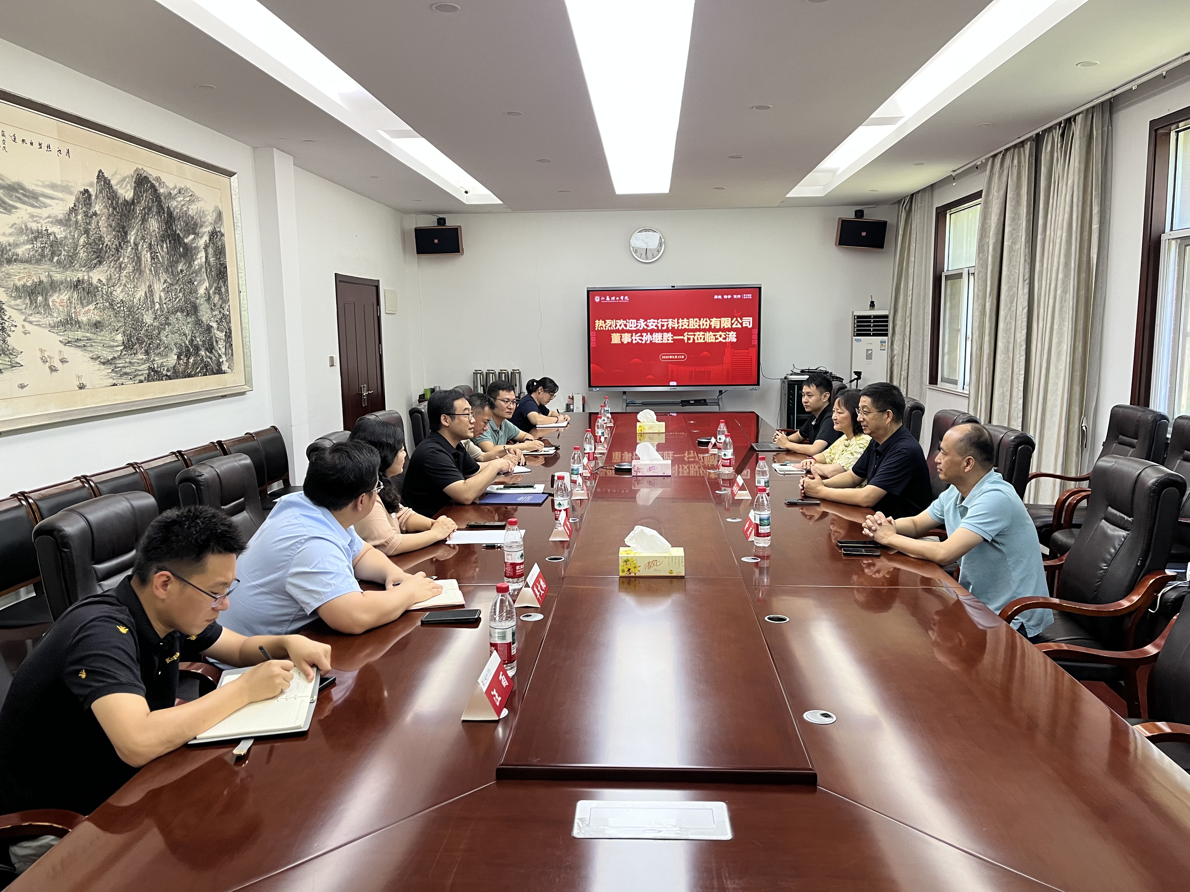 8月15日上午,永安行科技股份有限公司董事长孙继胜一行来我校就学生公寓智能电子锁及系统的捐赠、安装和使用进行调研交流。党委常委、副校长范洪辉,后勤保障处、学生工作处、研究生院、校城融合工作办公室等部门相关负责人参加交流。