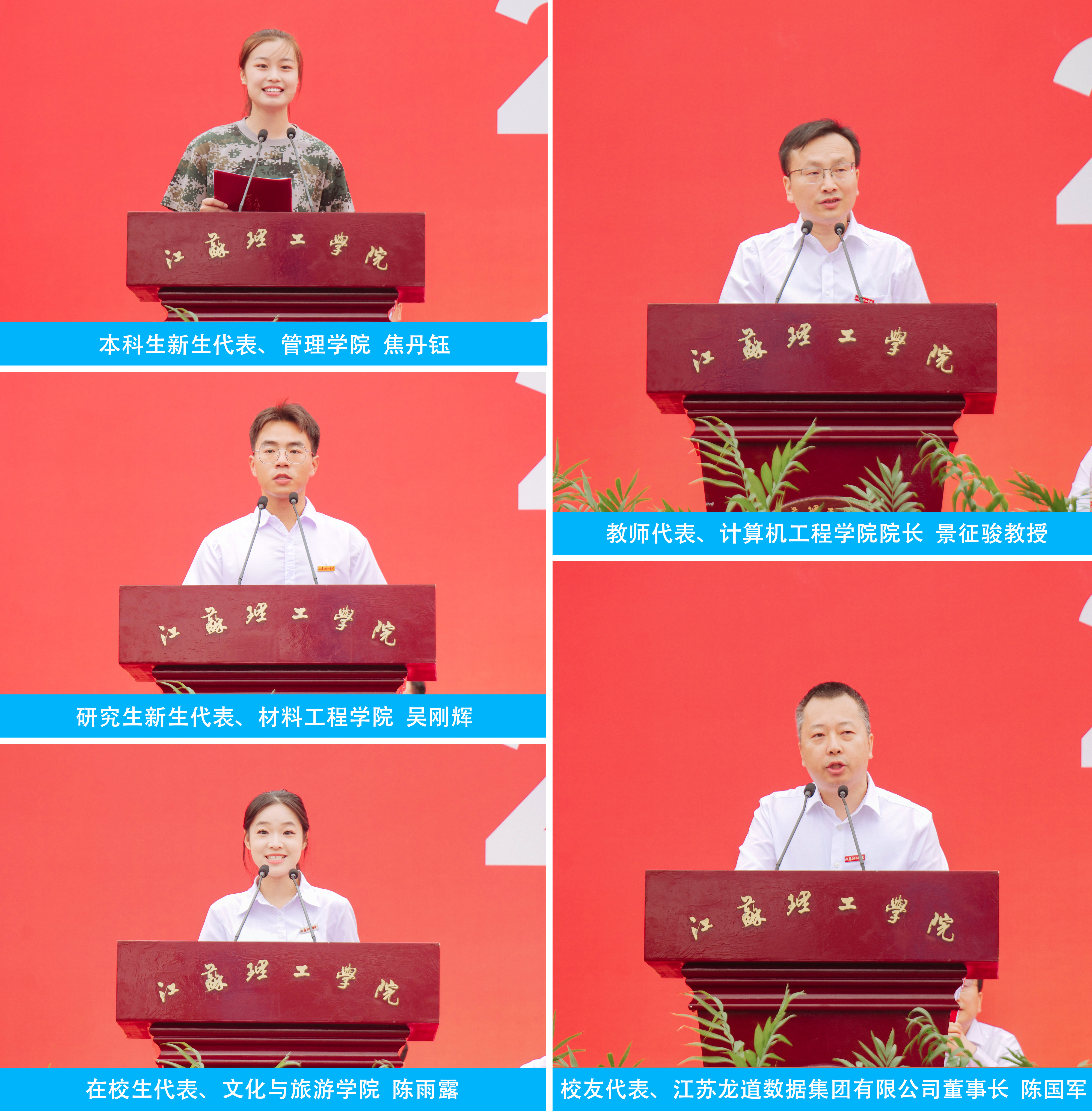 本科生新生代表、研究生新生代表、在校生代表、教师代表、校友代表