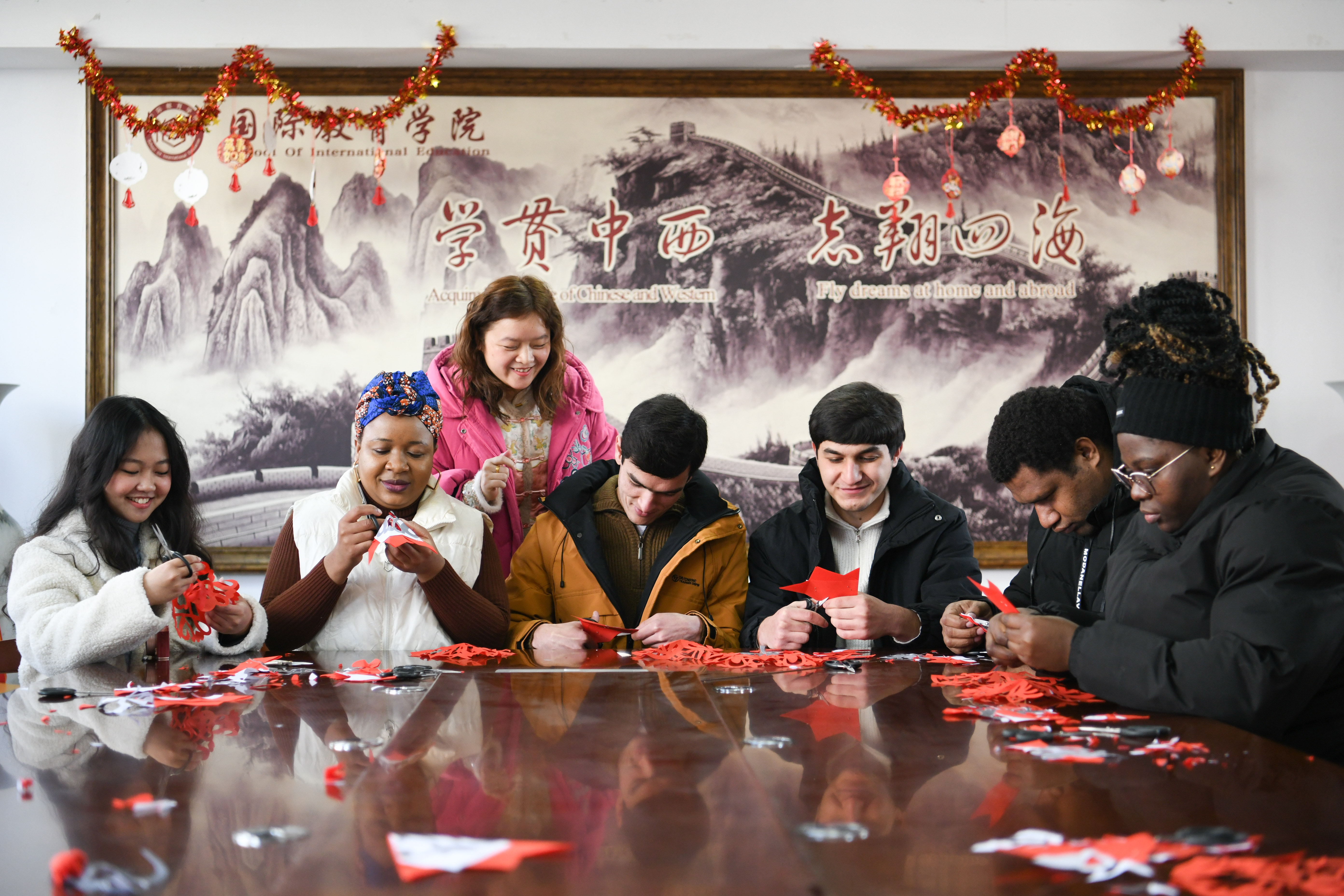 本次活动以“龙马精神、一马当先、马到成功、万马奔腾”为精神内核,设置了“挥毫写福马”书法体验区、“指尖塑福马”紫砂体验区、“剪印迎春马”剪纸体验区、“竞技奔腾马”竞技游戏区,将文化溯源、非遗体验、文艺联欢与新春祝福深度融合,打造了一场兼具文化底蕴与互动乐趣的马年新春盛宴,让外籍教师、留学生们在沉浸式体验中感知中国年的独特韵味,感受中华优秀传统文化的博大精深。(图/史康;文/蒋詹、闫国庆;审核/吴玉峰;编辑/周雅倩)