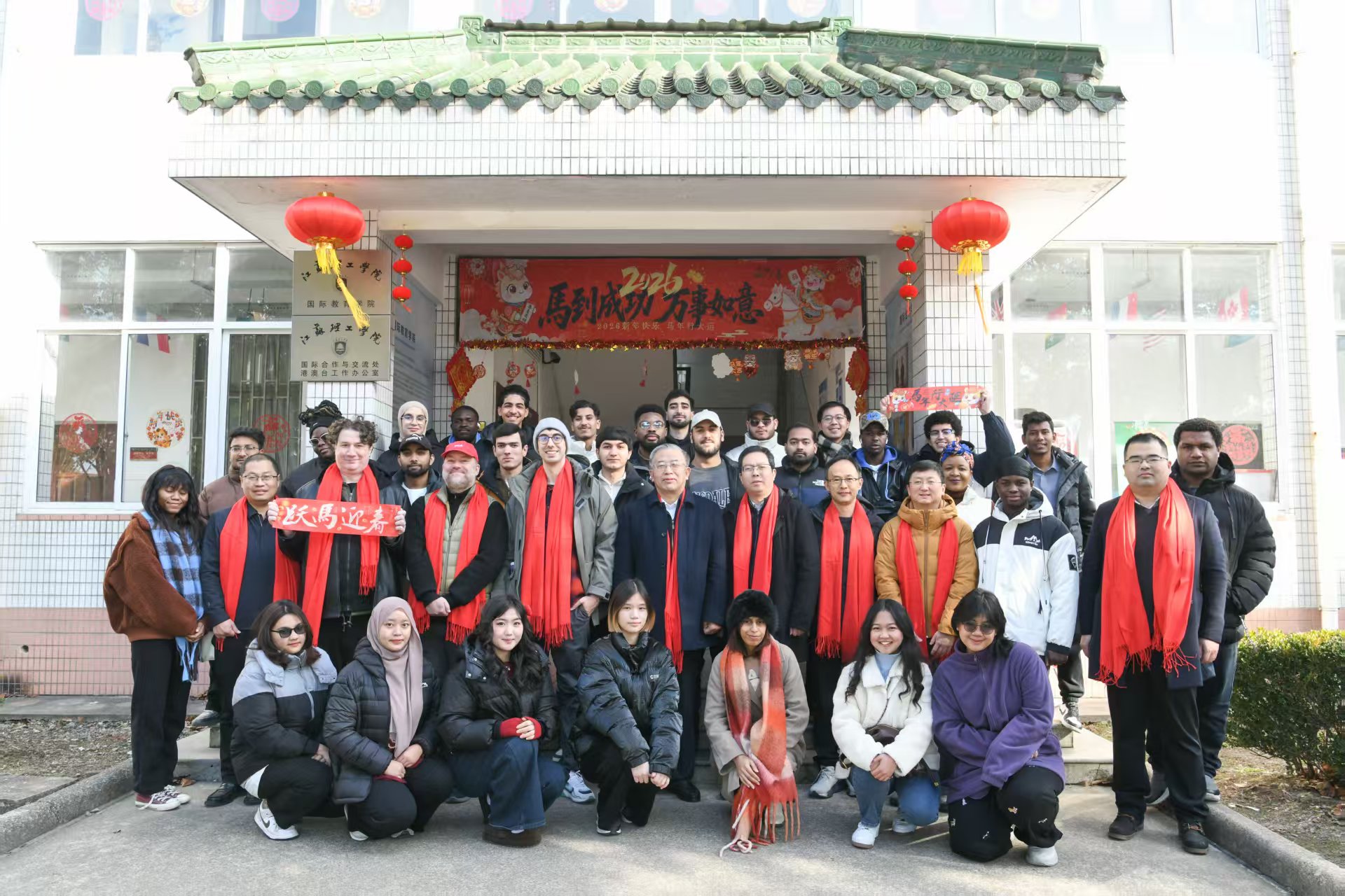 崔景贵致辞。他感谢全体外籍教师、留学生为学校高质量发展作出的积极贡献,并祝福大家新年龙马精神、吉祥如意。他勉励外籍教师、留学生学习习近平主席给美国青少年教育交流团访华师生重要复信精神,做两国友好友谊的新一代使者,持续搭建青少年沟通交流桥梁,在互动互鉴中共同筑牢人文交往纽带,携手一起为梦想奋斗、为幸福打拼,为持续做优“锦绣江苏”“留学江理工”等品牌注入新动能、书写新篇章。