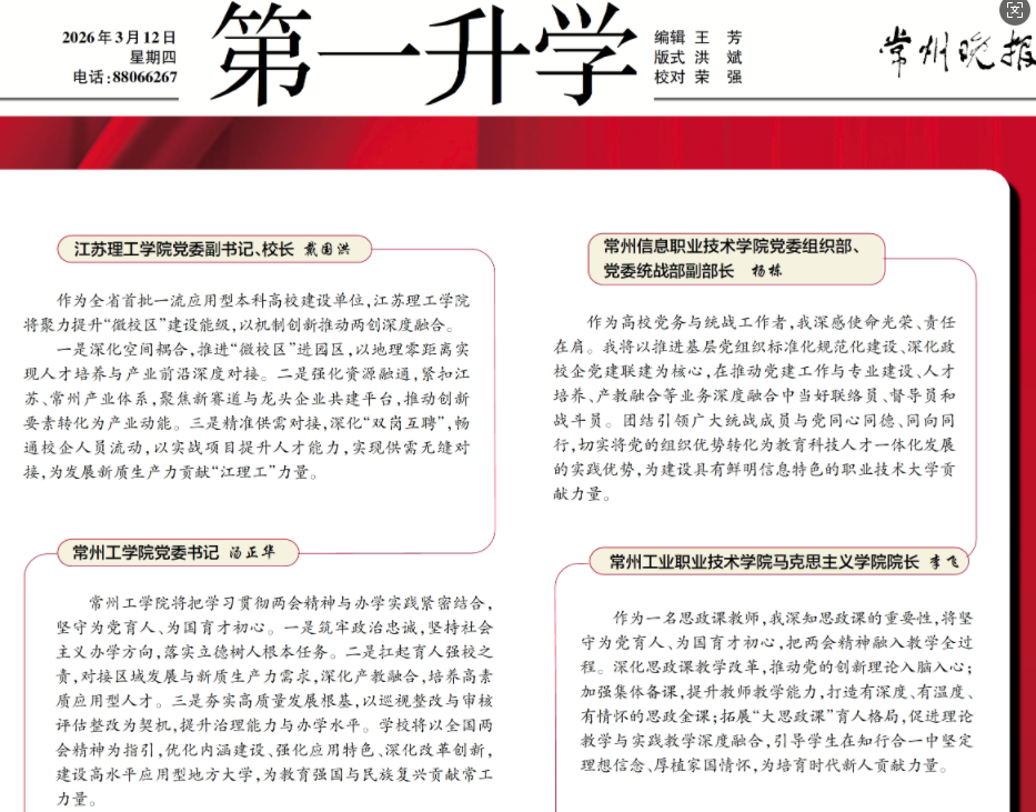 常州晚报:在常高校师生热议两会